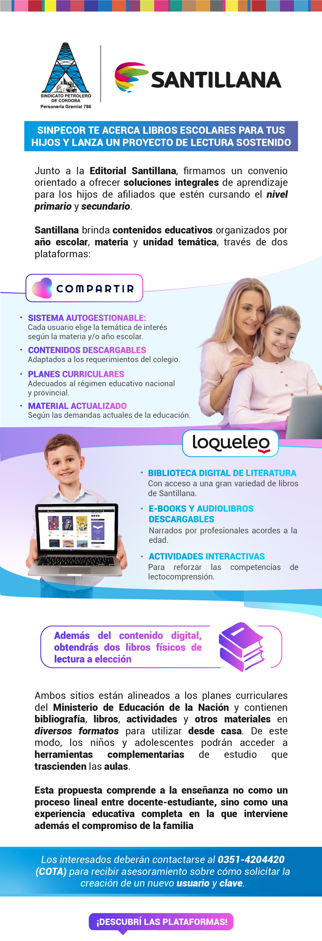 NUEVO CONVENIO CON LA EDITORIAL SANTILLANA: LIBROS ESCOLARES Y PROYECTOS DE LECTURA PARA HIJOS DE AFILIADOS